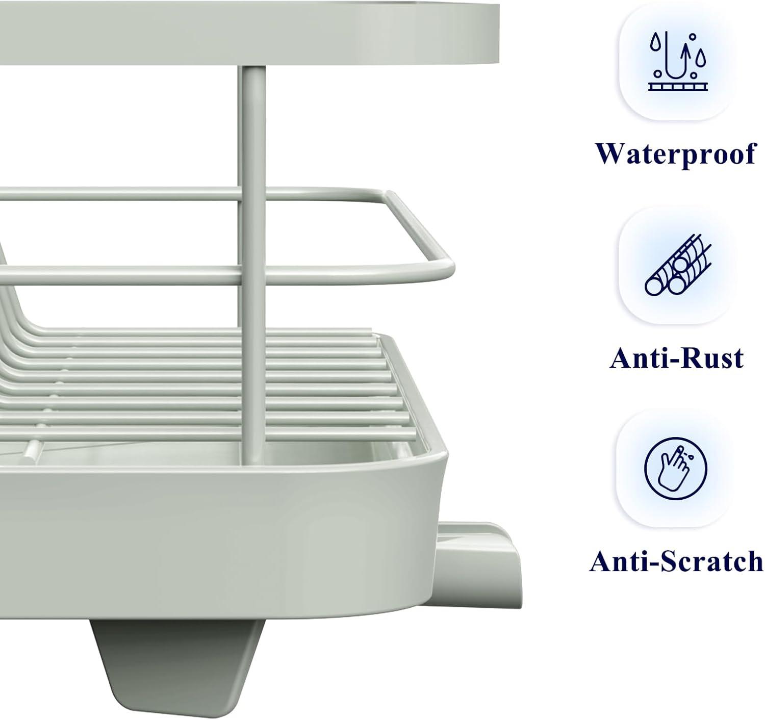 Kitsure Dish Drying Rack for Kitchen Counter, Stainless Steel Sink Organization and Storage Essentials with Cutlery Holder, Home and Appartment Decor, 12”W x 15.5”L, Black(Light Grey)