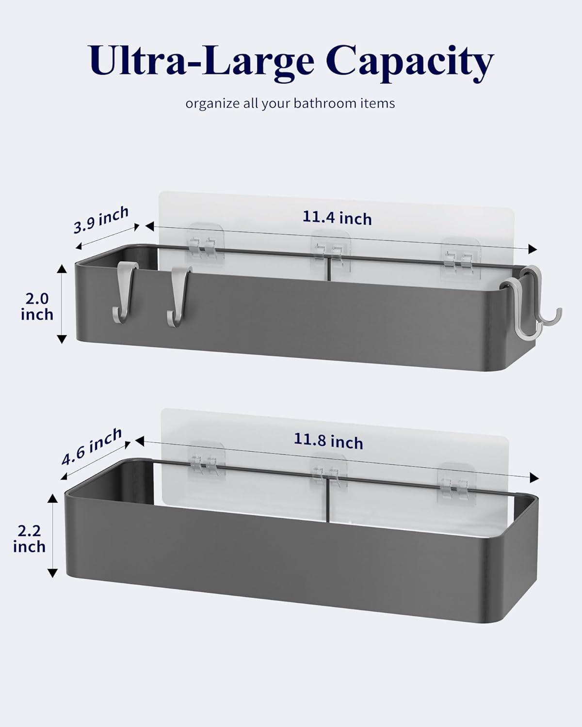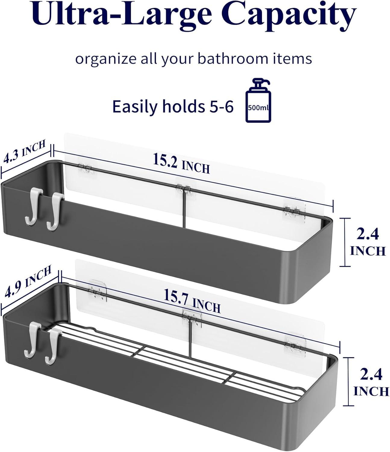 Kitsure Large Shower Caddy – 2 Pack Adhesive Shower Organizer, Rustproof Stainless Steel Shelves, No-Drill Bathroom Organizers and Storage, Black(Dark Grey)