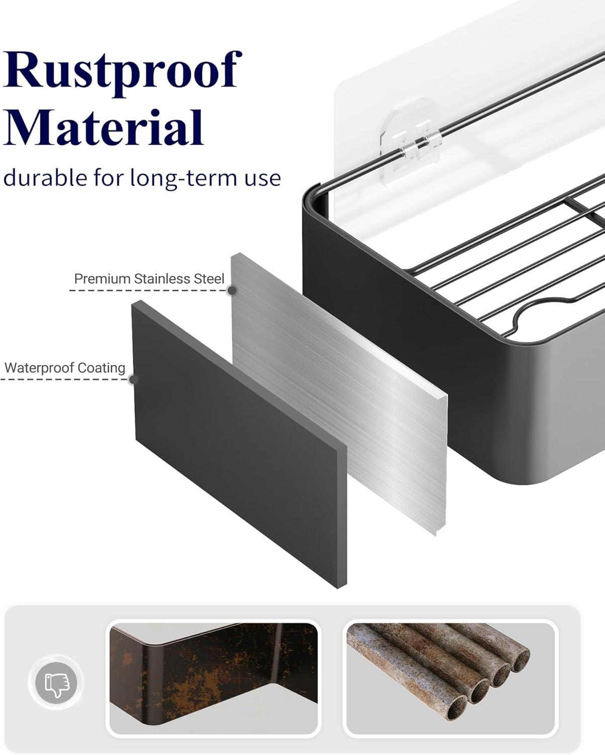 PREMIUM RUSTPROOF MATERIAL: Kitsure shower racks for inside shower feature 100% stainless steel and thickened coating, which is rustproof, waterproof, scratch-free, and durable for long-term use. In addition, with a smooth and easy-to-clean surface, you can just rinse the shower caddy and leave it to air dry.