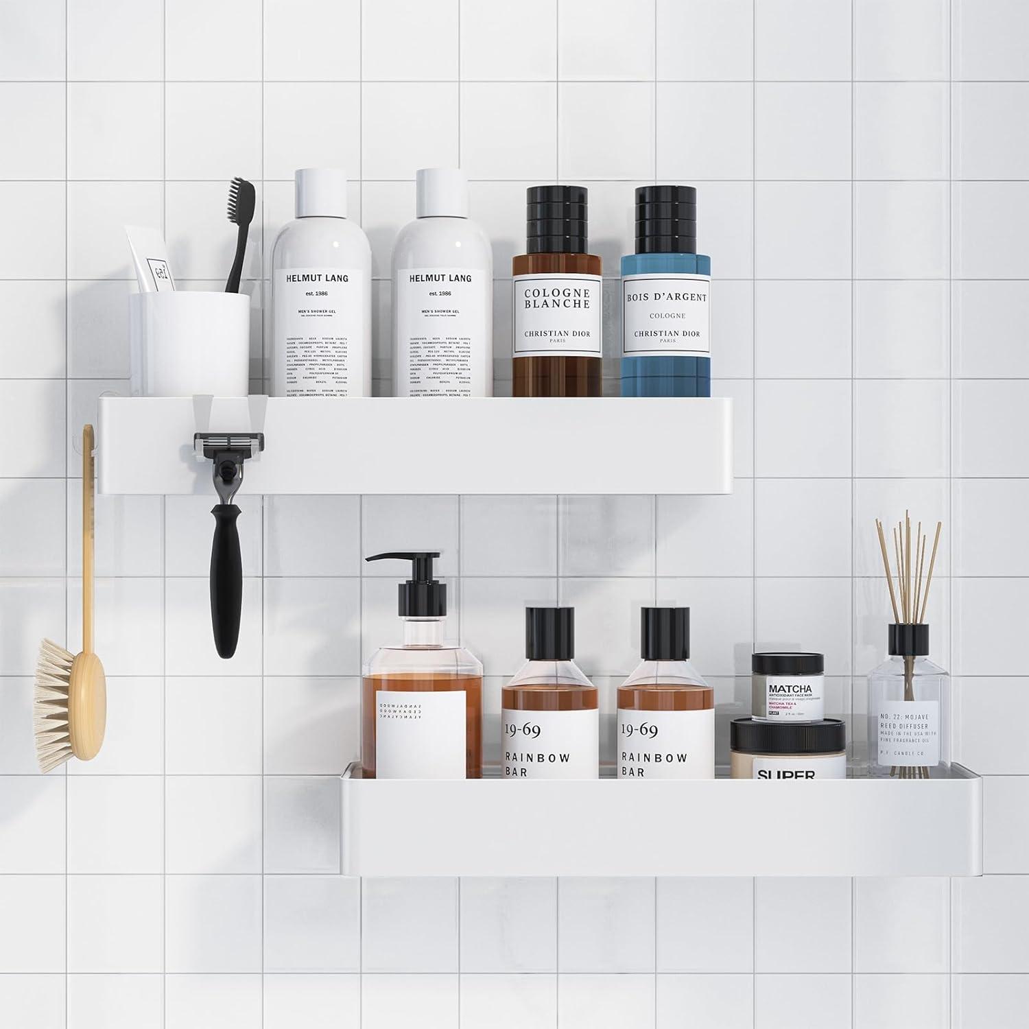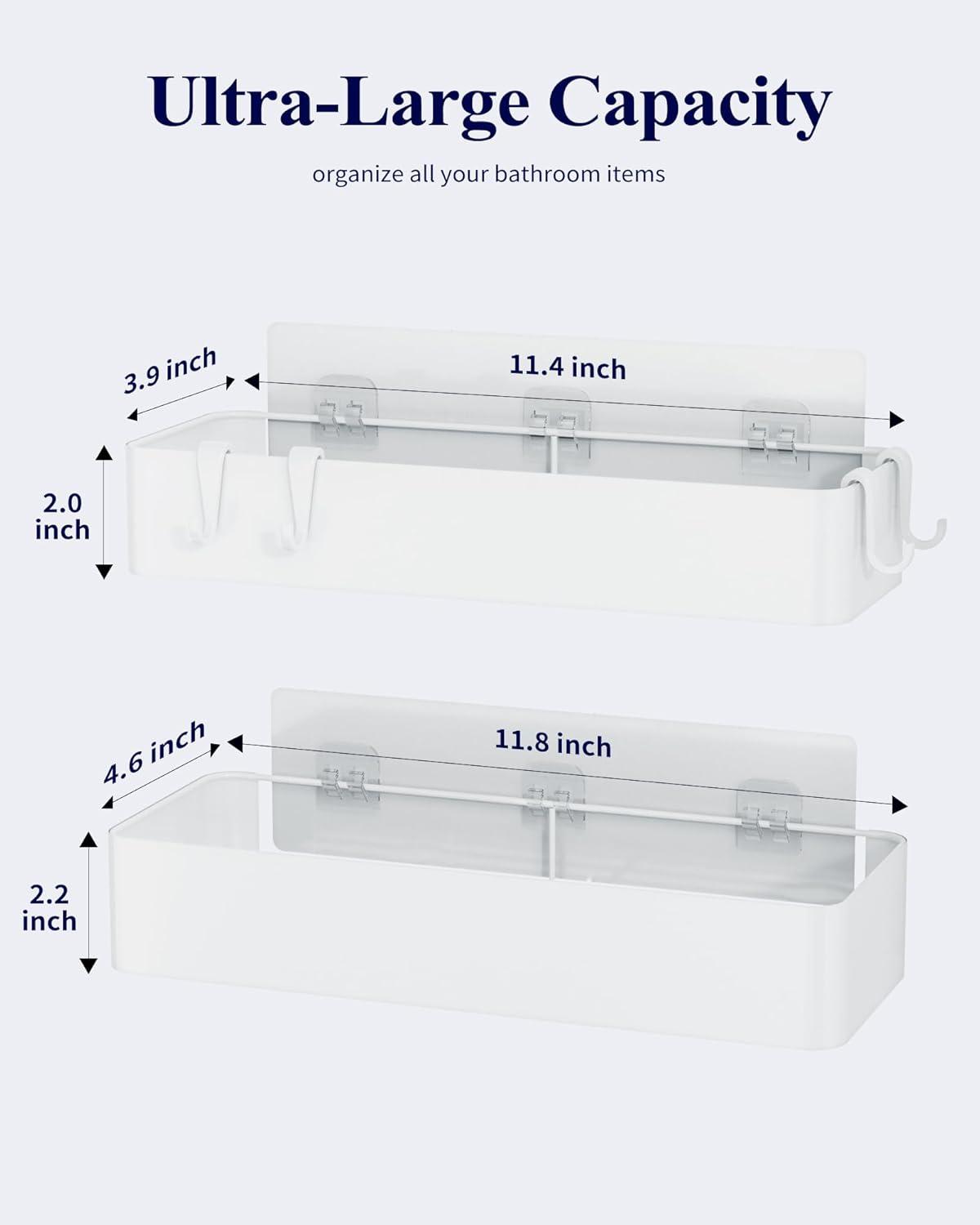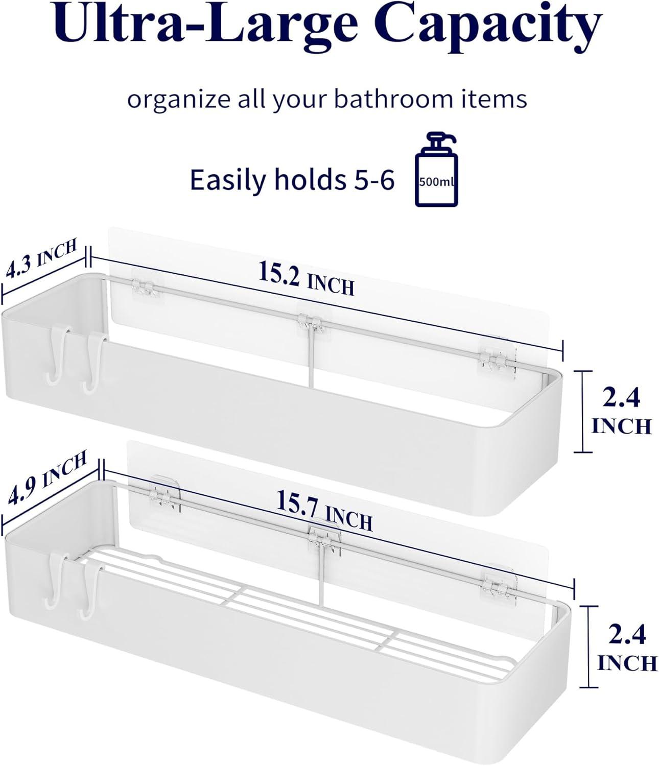 Kitsure Large Shower Caddy – 2 Pack Adhesive Shower Organizer, Rustproof Stainless Steel Shelves, No-Drill Bathroom Organizers and Storage, Black(White)