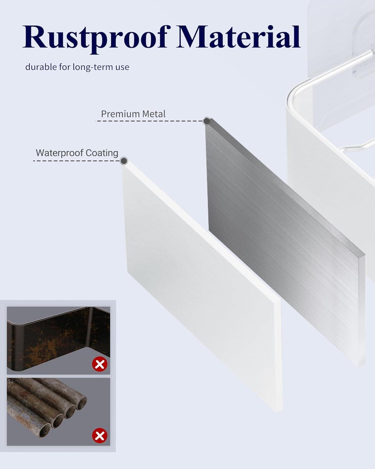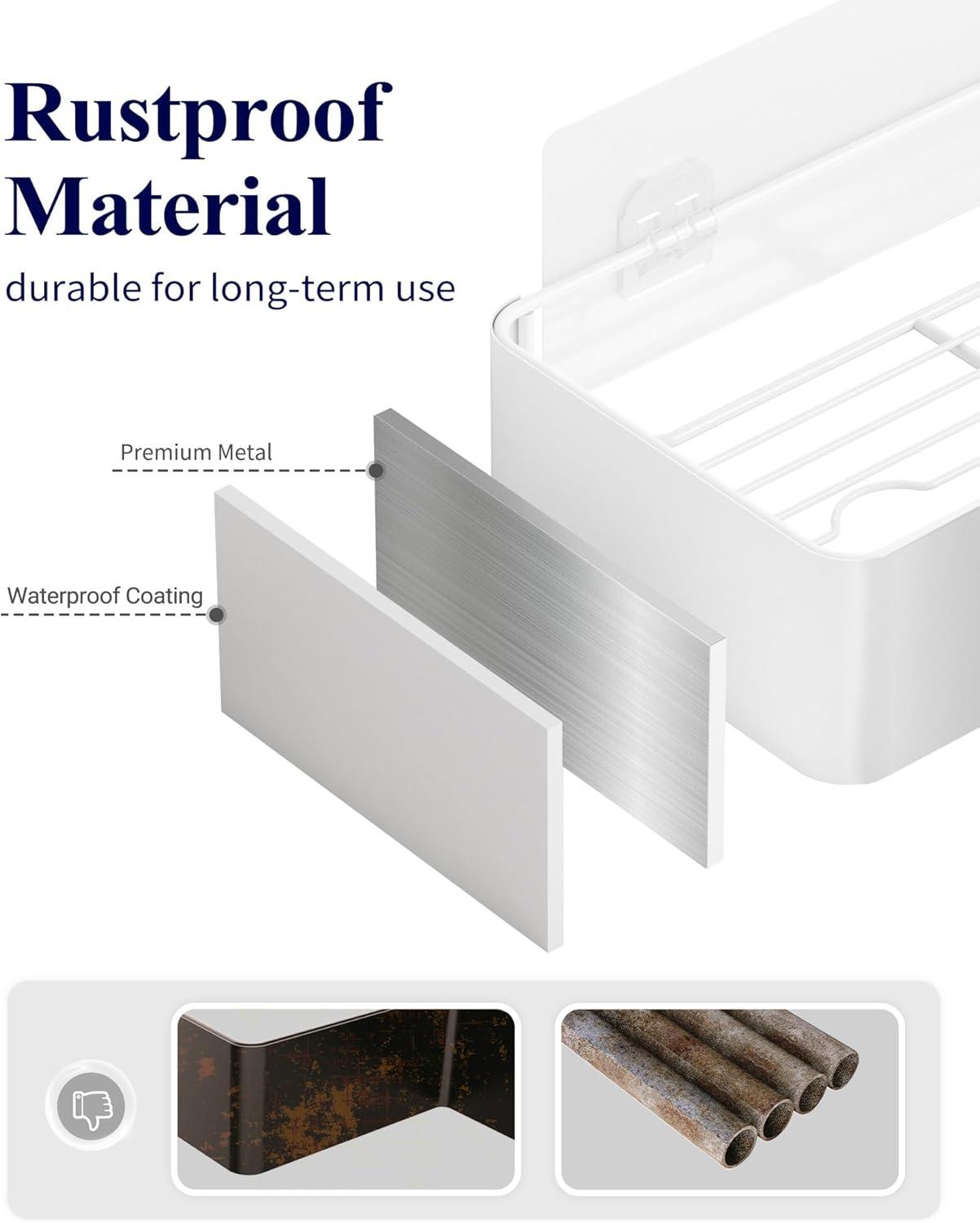 PREMIUM RUSTPROOF MATERIAL: Kitsure shower racks for inside shower feature 100% stainless steel and thickened coating, which is rustproof, waterproof, scratch-free, and durable for long-term use. In addition, with a smooth and easy-to-clean surface, you can just rinse the shower caddy and leave it to air dry.