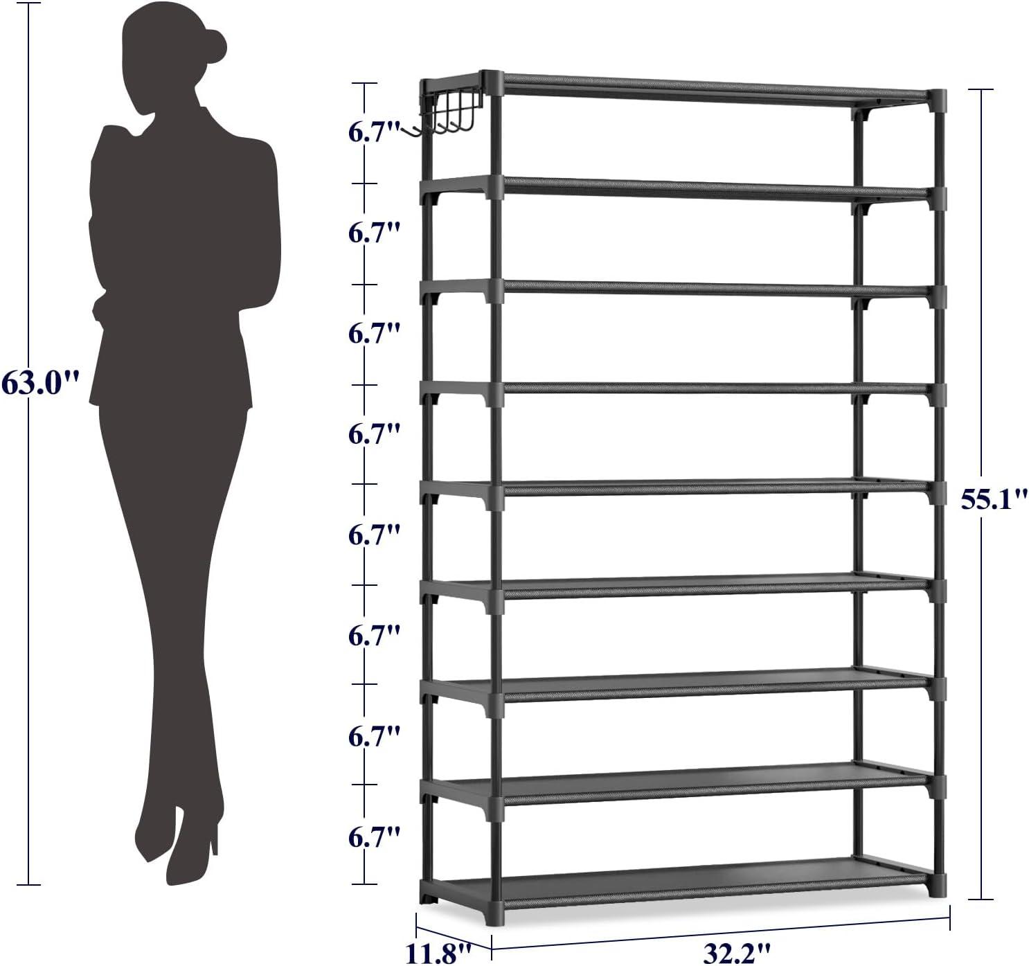 Kitsure Shoe Rack for Closet – 9-Tier Shoe Organizer with Hook Rack, Large-Capacity & Space-Saving Shoe Shelf for Entryway, Bedroom, Living Room,32.2″ x 11.8″ x 55.1″, Black