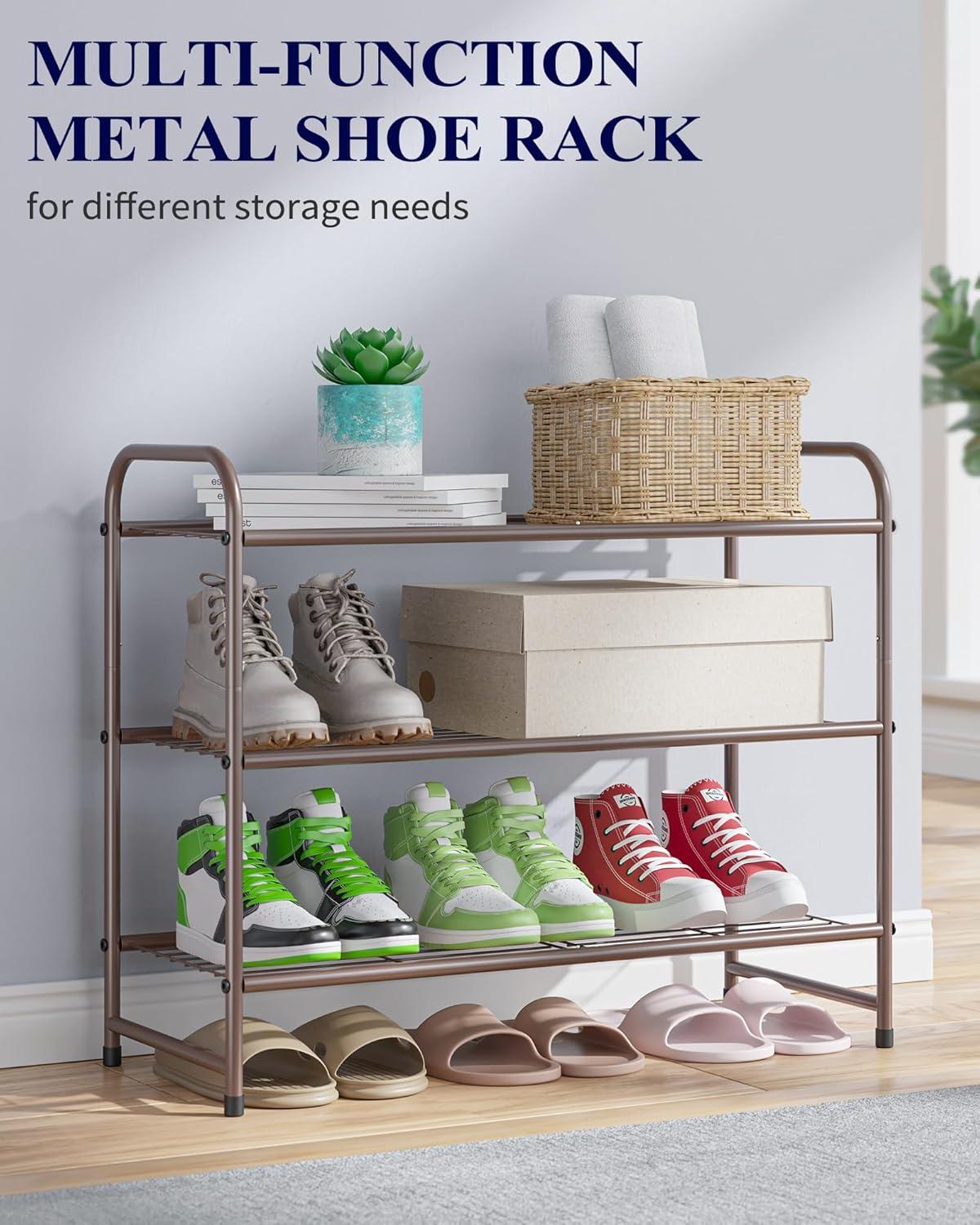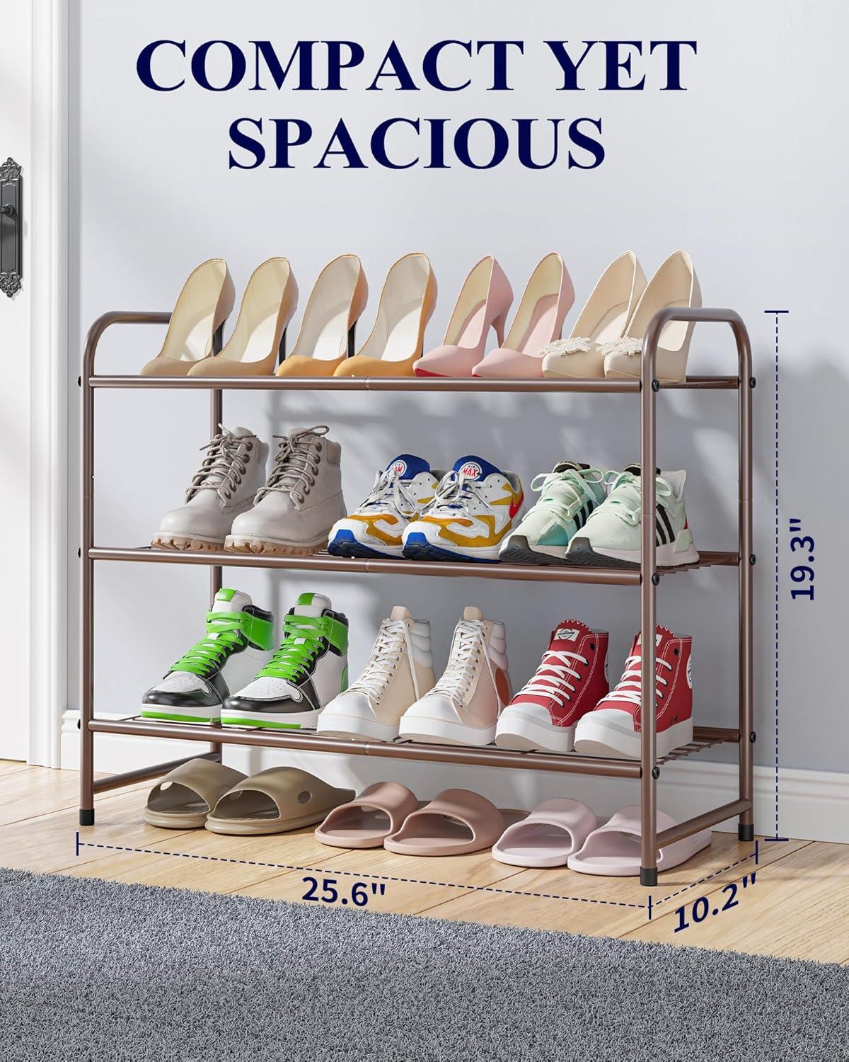 Kitsure Shoe Rack – Stainless Steel Shoe Organizer, Sturdy Shoe Rack for Closet and Front Door Entrance, Free Standing Shoe Shelf, Closet Organizers and Storage, 25.6″ Wide – 3 Tier, Black(Brown)