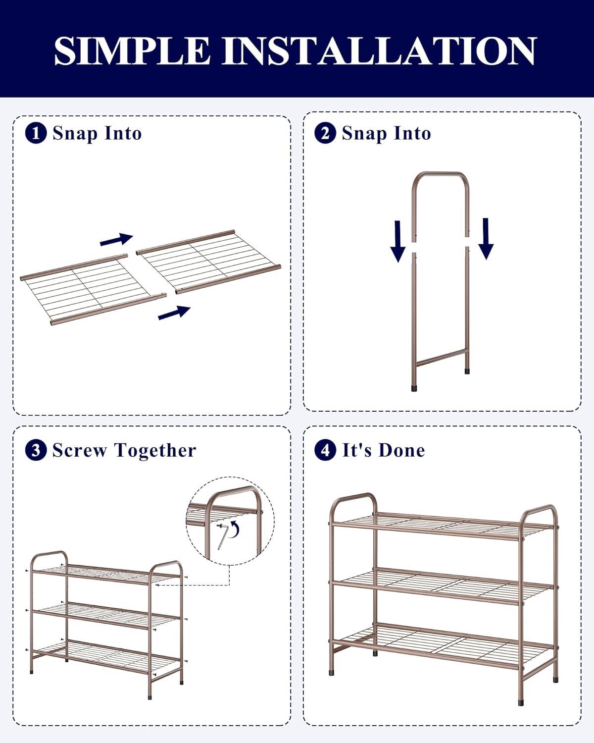 EASY ASSEMBLY: Kitsure provides step-by-step instructions and installation video to ensure quick and easy assembly. With the simple structure, you can easily set up these shoe racks for closets in minutes just by pressing the snap buckles.