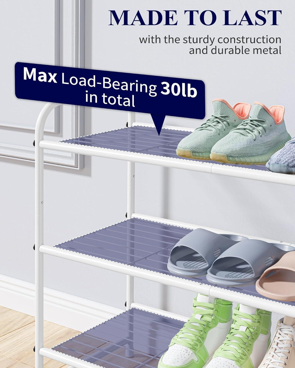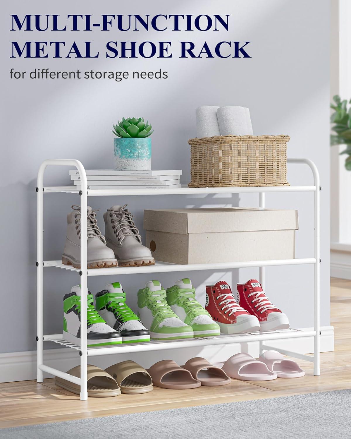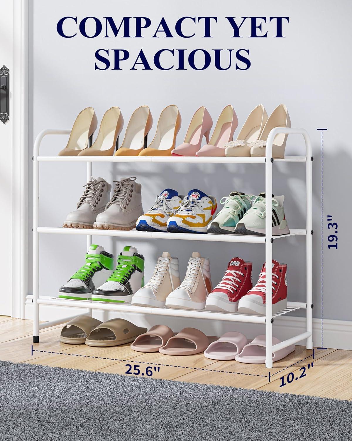Kitsure Shoe Rack – Stainless Steel Shoe Organizer, Sturdy Shoe Rack for Closet and Front Door Entrance, Free Standing Shoe Shelf, Closet Organizers and Storage, 25.6″ Wide – 3 Tier, Black(White)