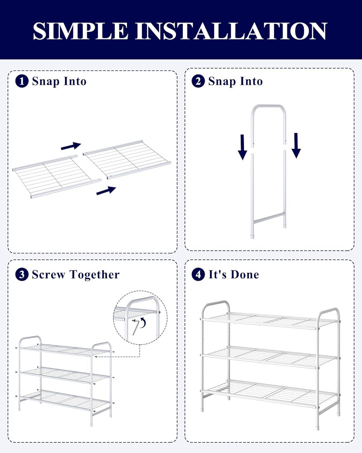 EASY ASSEMBLY: Kitsure provides step-by-step instructions and installation video to ensure quick and easy assembly. With the simple structure, you can easily set up these shoe racks for closets in minutes just by pressing the snap buckles.