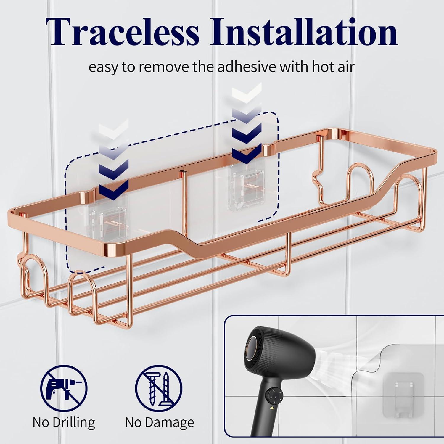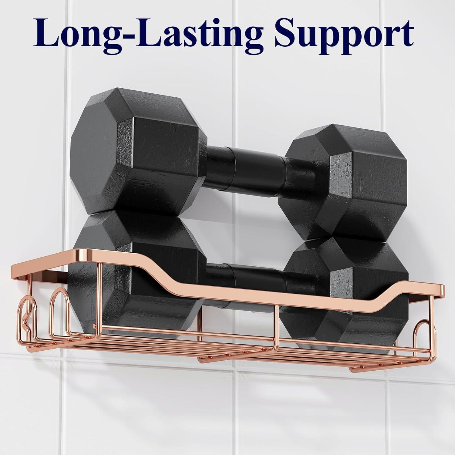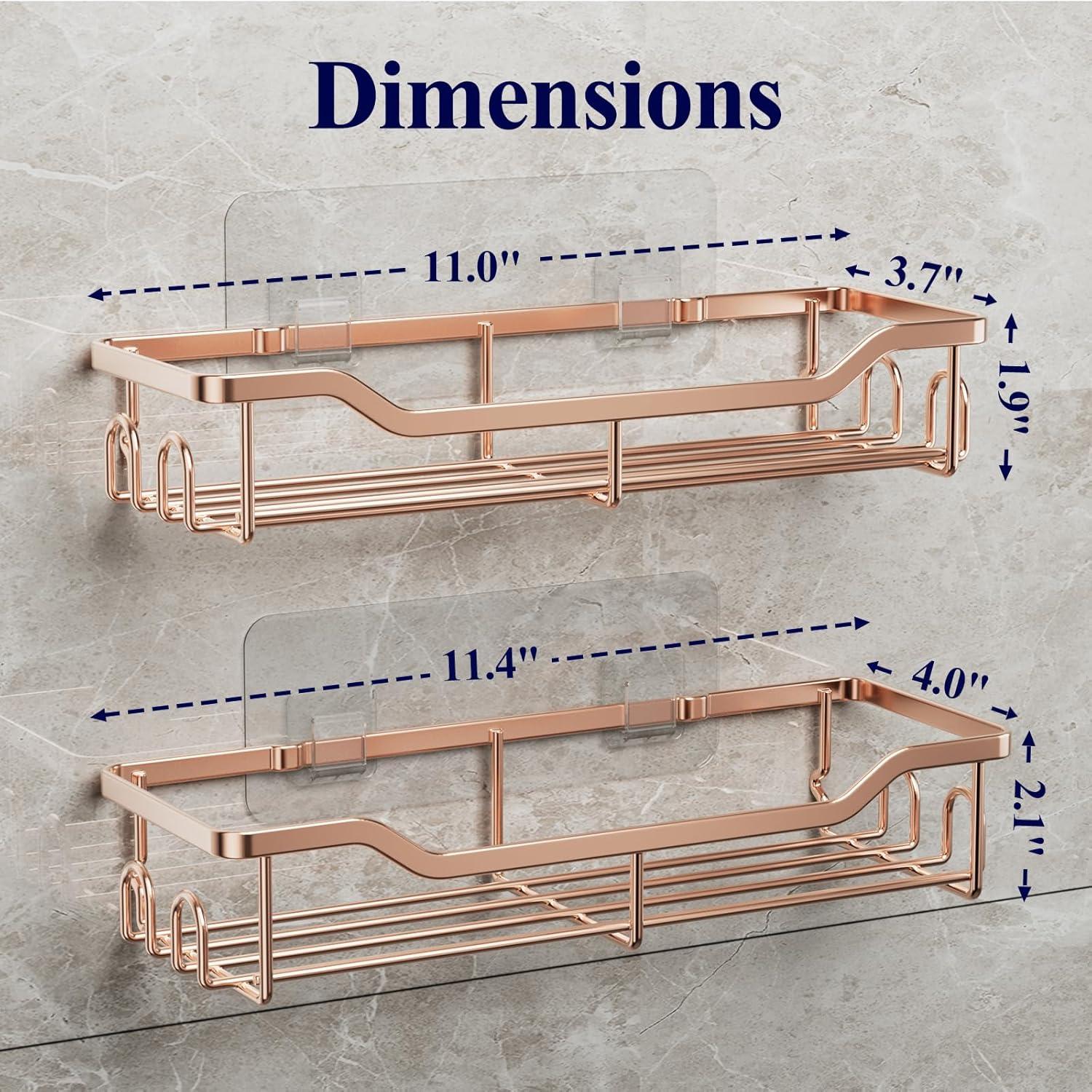 Kitsure Shower Caddy – 2 Pack, No Drilling Shower Organizer with 8 Hooks, Rustproof Stainless Steel Shower Shelf for Inside Shower, Wall Mounted Shower Rack for Bathroom, Kitchen, Black(Rose Gold)