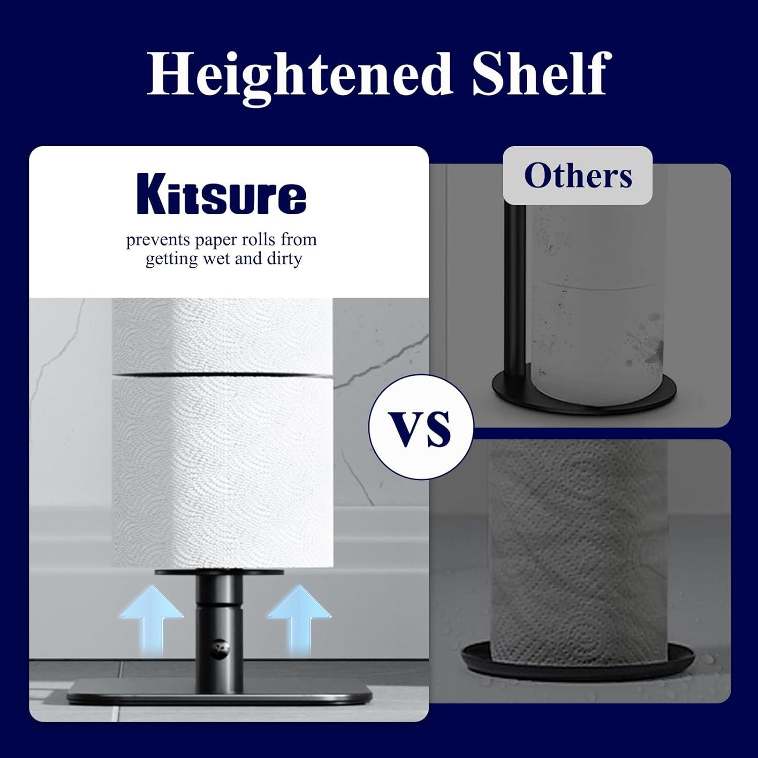 – QUICK ASSEMBLY: The Kitsure toilet paper holder stand is designed for hassle-free assembly. Simply secure the parts together as instructed (the instruction manual is printed on the product box) or product installation video with 4 screws. In no time, your bathroom toilet paper holder will be fully assembled and ready for use. Say goodbye to complicated installations and enjoy the convenience of this user-friendly toilet paper stand.